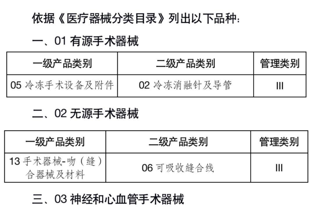 第一批实施医疗器械唯一标识的产品目录